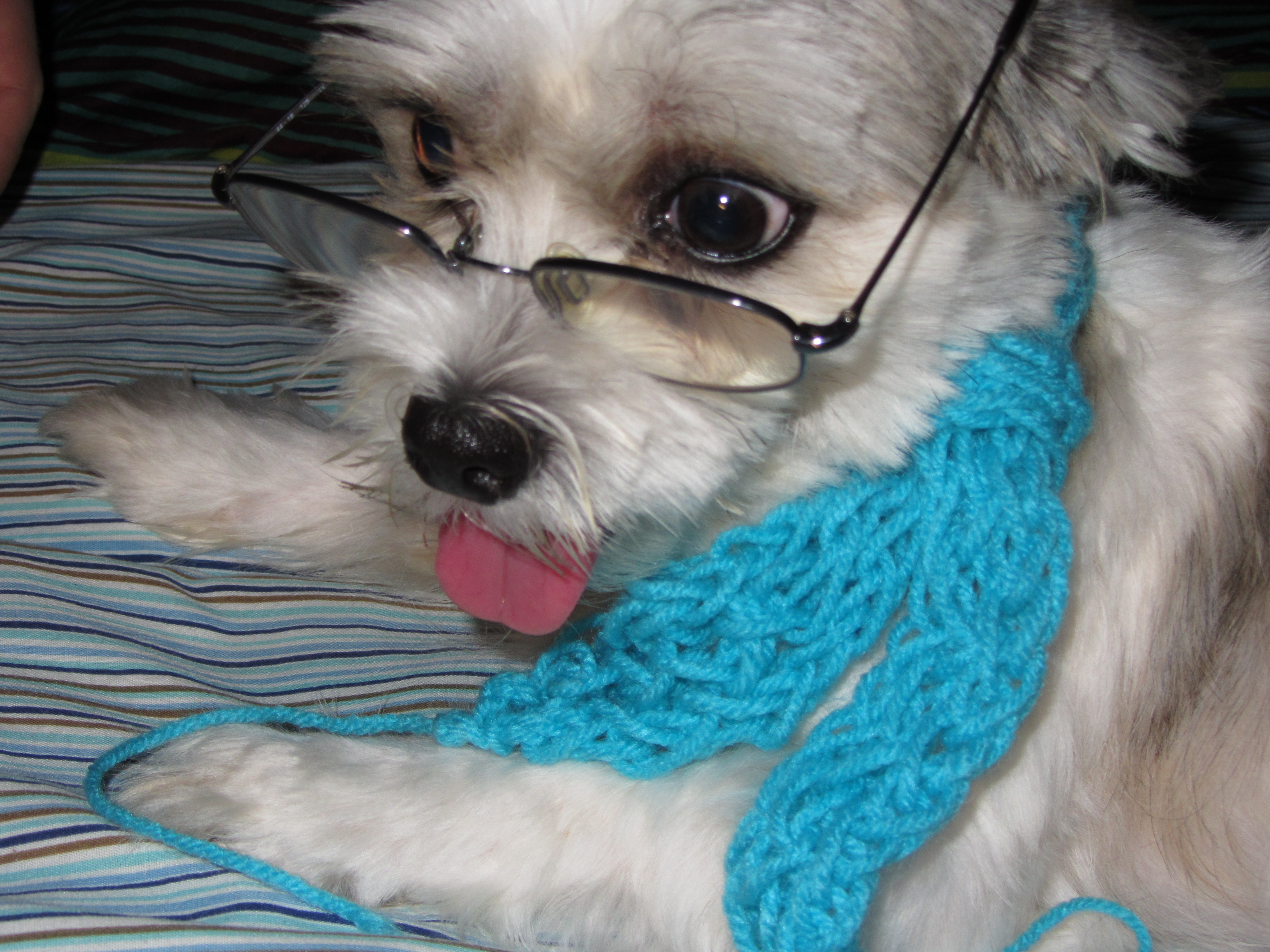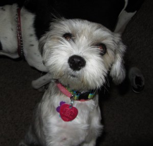 Just over two years ago Lucy came into our lives. A hybrid (a fancy word for mutt) of a Shih Tzu and Coton de Tulear, Lucy is a wonderful dog who will do just about anything for food. Her hair is much shorter than usual because it gets really hot in the summer and her long, long hair tends to get matted despite our best efforts – and she doesn’t like the groomers.