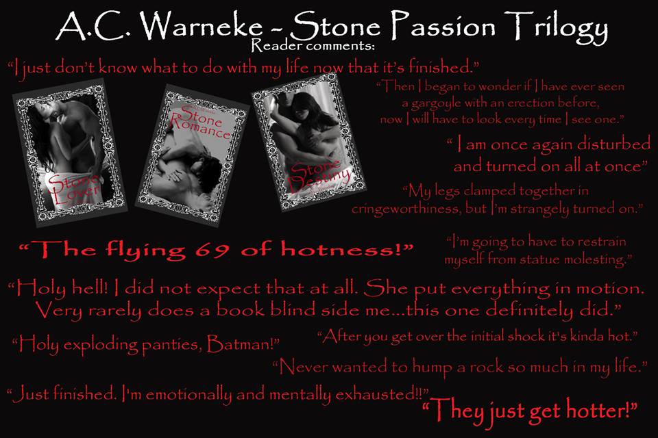 Well, another month has disappeared into the time-sucking vortex. it has been a whirlwind of dance, writing, family, and fun. At some point I set up a kindle countdown deal for the Stone Passions Trilogy that will start September 1st and run through September 8th. This is my first time attempting a countdown deal so I’m pretty excited, since the trilogy will be 99 cents the first day and slowly increase in price until it hits $6.99 once again. The timing works out well since I am currently working on a 4th gargoyle book – though it won’t be necessary to read the Stone Passions Trilogy first to enjoy it.