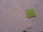 Yesterday I wrote about the chaos of my organization abilities – or lack there of. So today I decided to take some pictures to share the craziness. Not only are the notes scattered over pages and pages of paper the writing is barely decipherable. Of course, not everything that is written on paper will be in the story – and a lot of what isn’t written will be. If only every story followed the same rules I might be able to figure out a better system but I have written several books and every one has taken its own path. It’s enough to drive a person mad – talk me back from the ledge!!